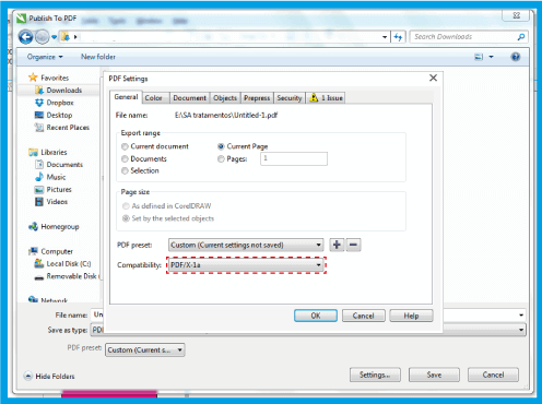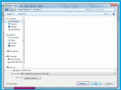 .Pulse en . Se abrirá una ventana (imagen de abajo) en la cual podrá definir las configuraciones del archivo.