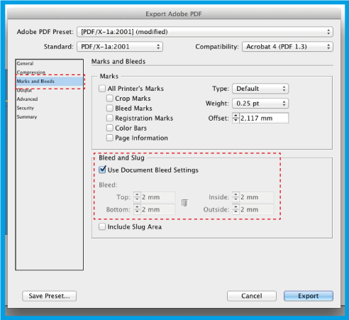 .En la opción , coloque 2mm (este es el margen que definirá el área de seguridad, es decir, todos los textos deberán estar dentro de esta área).