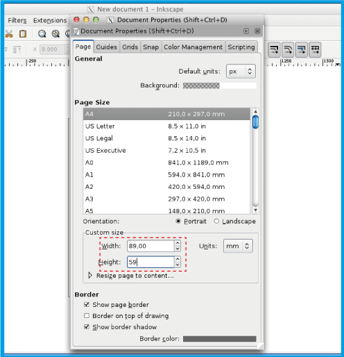 .Certífiquese que añade 4mm (0,4cm) a la altura y ancho de su archivo. En el caso de una tarjeta de visita con 8,5x5,5cm, coloque 8,9x5,9cm.