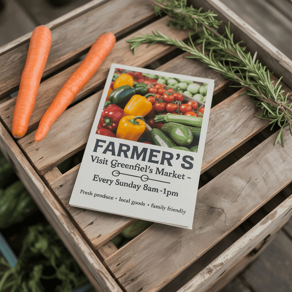 - Rustic farmer's market flyers to promote fresh produce and goods.